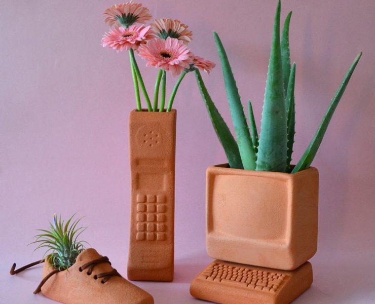 Ordinateur old school, combiné de téléphone, casquette, sneakers, ballon de basket… Avec simplicité et ingéniosité, le Texan Wyatt Little détourne les objets du quotidien en les transformant en objets déco en céramique…