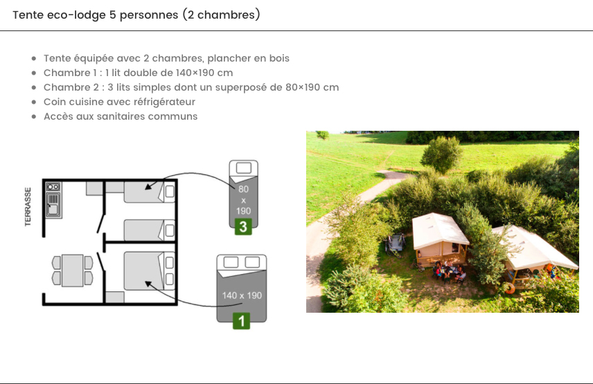 – logement en Tente Lodge… c’est le camping de luxe, ultra confort !
