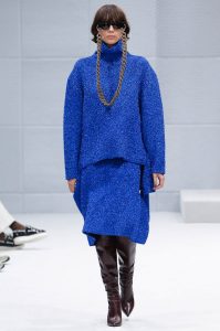 Cet hiver encore, la monotonie n’est pas la bienvenue. La preuve avec le lurex, un fil recouvert de polyester à l’aspect métallique, qui fait une entrée remarquée dans les dressings cette saison. Porté avec des bottes montantes en cuir bordeaux, il donne de l’éclat à un ensemble bleu klein chez Balenciaga, tandis que Jil Sander imagine une robe mi-longue mauve délicatement irisée. C’est aussi la couleur que choisit Lunss Studio pour une combinaison de femme fatale. Le lurex, plus sexy que jamais !